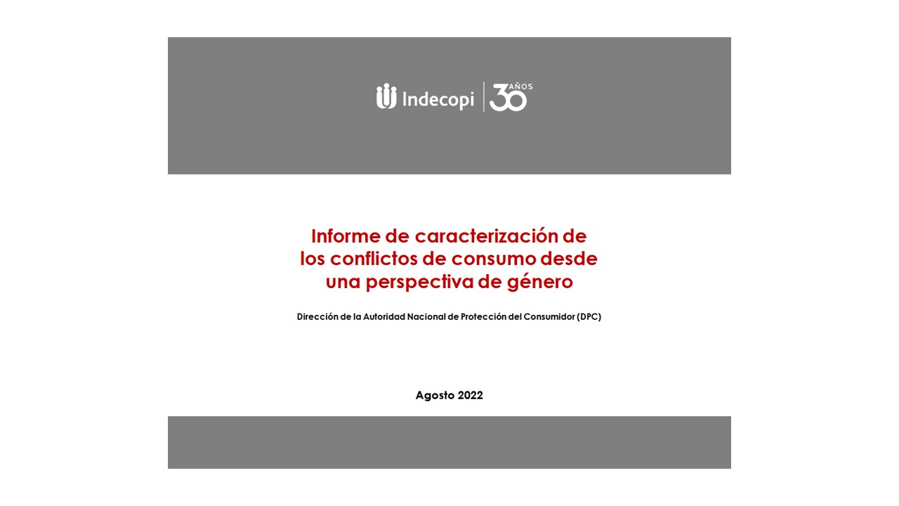 El Indecopi, a través de la Dirección de la Autoridad Nacional de Protección del Consumidor, presenta el documento denominado “Informe de caracterización de los conflictos de consumo desde una perspectiva de género”, que busca visibilizar, desde una perspectiva de género, la atención y solución de conflictos brindados a través del Indecopi en materia de consumo, utilizando como principal insumo la información institucional de los reclamos concluidos del periodo enero 2019 a junio del 2022.
