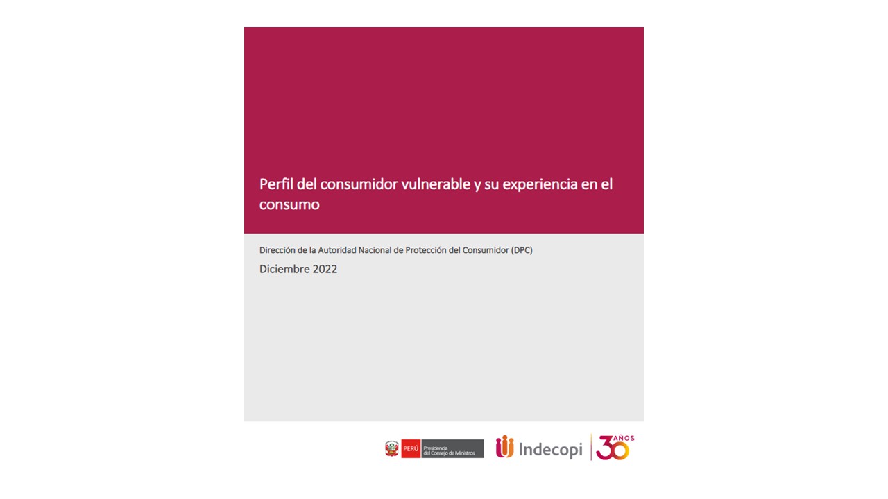 El Indecopi presenta el «Perfil del consumidor vulnerable y su experiencia en el consumo», que busca dar a conocer las principales características de tres grupos de consumidores vulnerables: adultos mayores, personas con discapacidad y personas LGBTI, así como su experiencia en el consumo y reclamo; enmarcado dentro de la Política Nacional de Protección y Defensa del Consumidor y en línea con las recomendaciones indicadas en el Examen voluntario entre homólogos del derecho y la política de protección del consumidor del Perú (Peer Review) brindada por la Conferencia de las Naciones Unidas sobre Comercio y Desarrollo (UNCTAD).