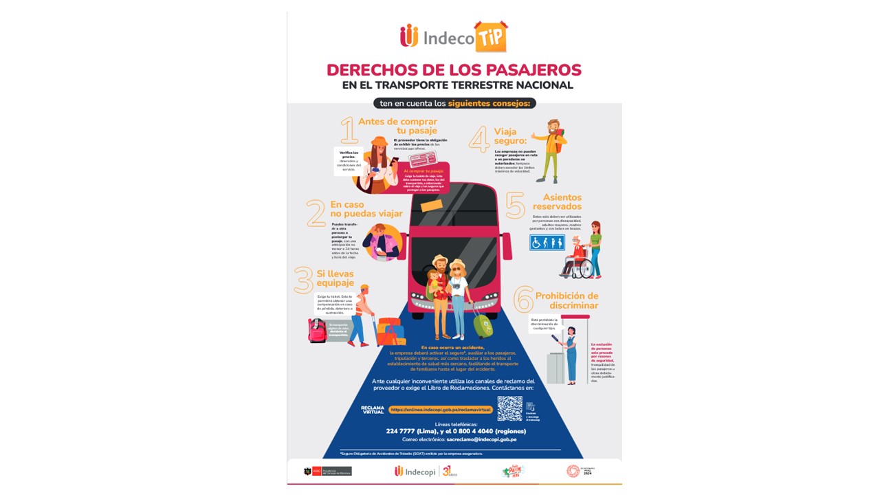 Infórmate sobre tus derechos como usuario del servicio de transporte terrestre interprovincial, y opta por un servicio seguro a nivel nacional, por ejemplo, no tomes este servicio en paraderos informales.