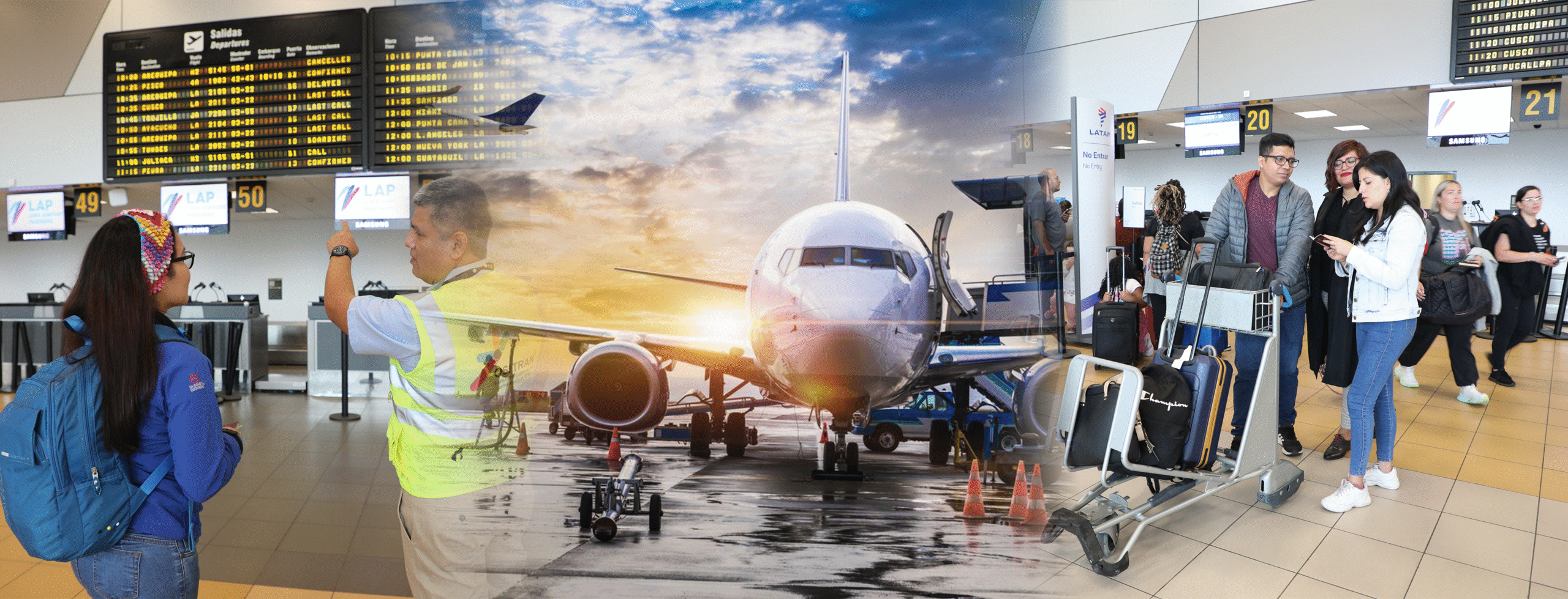 Recuerda que al hacer uso de un aeropuerto tienes derecho a recibir diversos servicios, como salas de embarque climatizadas e iluminadas, sistema de procesamiento y entrega de equipajes, etc.