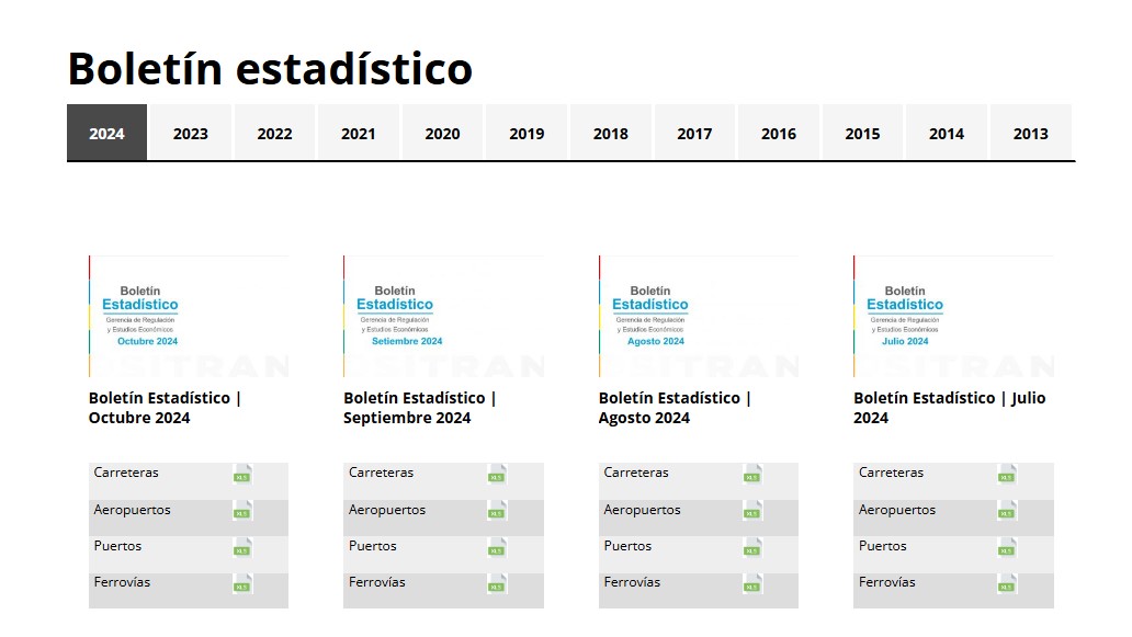 Boletines estadísticos elaborados por la Gerencia de Regulación y Estudios Económicos del Ositrán. Aquí encontrarás información sobre los diversos aspectos referidos a la regulación de la infraestructura de transporte de uso público en el país.